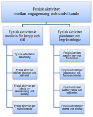 Ett övergripande tema identifierades; Fysisk aktivitet – mellan engagemang och undvikande, samt två huvudteman; Fysisk aktivitet är medicin för kropp och själ och Fysisk aktivitet påminner om begränsningar. Varje huvudtema innehöll fyra subteman som beskrev informanternas upplevelser.
